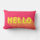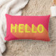 Coussin rose vibrant comportant une conception abstraite moderne d'un jaune "bonjour" avec un long gradient d'ombre. Ajoutez un amusement et un contact coloré à votre maison ou pièce de dortoir avec ce coussin moderne de bonjour.