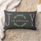 Ce coussin élégant et moderne de vacances comporte le mot "joie" avec demi de guirlande de feuille et de baies colorés. Personnaliser avec votre nom de famille. La couleur de coussin peut être customisée pour assortir votre décor, "personnaliser simplement choisie il" pour des options illimitées de couleur. Visitez modernmatrimonydesigns.com pour notre pleine collection de conceptions.