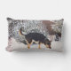 Coussin Rectangle Winter snow scene with cute black and tan dog
