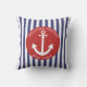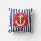 Coussin Red Navy Blue Stripes Nom du bateau Ancre Nautique