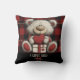 Coussin Red Plaid Bear I Love You Custom Name Monogram