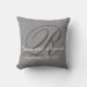 Coussin fait sur commande personnalisé de cadeau de mariage. Le regard de toile gris rustique avec le monogramme blanc, les noms de jeunes mariés et la date de mariage dans une police de manuscrit au-dessus de conception sur une photo de toile grise IMPRIMÉE effectuent l'arrière - plan. Elke Clarke© pour MonogramGallery chez Zazzle. Fait un grand cadeau pour des nouveaux mariés. Grand accessoire à la mode et élégant pour votre chambre à coucher, chaise préférée, en tant que le décor de maison d'amusement dans votre chambre familiale ou addition décorative formelle à votre salon. Customisez avec vos noms, initiale de monogramme et date de mariage.