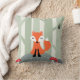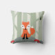 Coussin mignon et d'amusement comportant une illustration de bande dessinée d'un petit renard se reposant sur une roche dans la forêt. Près de lui sont les champignons colorés et un petit oiseau jette un coup d'oeil d'un nid dans un des arbres. Illustration par Mhea.