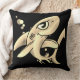Caricature cool de requin doré sur oreiller à lancer noir. Illustration ©2019 Michael C. Paul https://mikepaulart.com