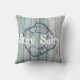 L'oreiller à jetons à thème de plage a un motif en bois teinté bleu qui semble avoir été secouru d'un chalet de plage patiné avec la ligne d'anneau de protection marine graphique et superposition de texte personnalisable "Stay Salty" en police blanche en détresse.