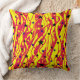 Lance l'oreiller avec des lignes et des étoiles chaotiques et colorées, des tons rouge et jaune