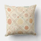 A seamless geometric pattern throw pillow featuring circles, grids, and intersecting lines in a warm retro palette of beige, terracotta, mustard, and sage green. Each circle contains unique textures such as dots and crosshatches, adding depth and character to the design. Inspired by mid-century modern aesthetics, this pattern combines minimalism and playfulness.