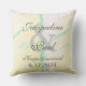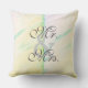 Romantique rose doux, vert, jaune, bleu pluie d'aquarelle tropicale arrière - plan réversible Mariage Jeter l'oreiller avec les noms de mariée et mariée et date mariage. Avant le Coussin a le libellé M. et Mme en gris. Personnalisez avec vos détails mariages. Le dos du Coussin a le libellé, M. & Mme Lovely cadeau mariage pour les jeunes mariés! Oeuvre originale de TamiraZDesigns.