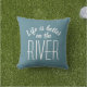 Caractéristiques de design Life is Better on the River Citation Ajouté à la turquoise tendance avec police blanche. La couleur de l'arrière - plan et les polices sont facilement changées dans la section de l'outil de conception. N'oubliez pas de consulter nos autres coussins de devis !