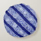 Bleu et noir, rond. Se glisse dernière le dos pour le soutenir. La qualité d'impression est excellente.