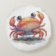 Un coussin rond avec une aquarelle illustrant un crabe très mignon.