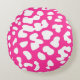Coussin ronde Empreinte de léopard blanc et rose chaud élégant et élégant. Portez votre côté sauvage à un tout nouveau niveau.