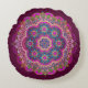 Elégant accent rond lancer oreiller fait en prune, avec un mandala coloré, au milieu.