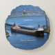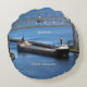 Bleu et noir, rond. Se glisse dernière le dos pour le soutenir. La qualité d'impression est excellente.