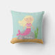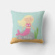 Ce coussin comporte une sirène rose avec les cheveux blonds et les yeux bleus légers. Elle s'assied sur une roche avec un ami rose-clair d'étoiles de mer au fond de l'océan. Ce coussin est parfait pour des amants de sirène.