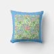 Un très joli Coussin ou Cushion avec un motif de primroses, jaunes et bleues avec une large bordure bleu turquoise, d'une aquarelle peinte à la main par Judy Adamson.