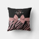 Parties scintillant en or Rose chic, fille Black Zebra Stripes Bow personnalisé Nom et oreiller à lancer monogrammé. Elégant design féminin.