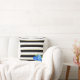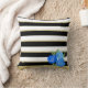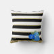 Coussin Roses bleus sur noir, blanc, Gold Stripes Cushion