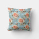 Coussin Roses élégants de pêche sur Arrière - plan bleu