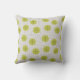 Cet oreiller de lancer a un design moderne du milieu du siècle des arcs bronzés qui se répètent sur le blanc comme un arrière - plan avec des cercles vert-or répétés avec des éclats vert-or foncé à l'intérieur.