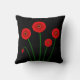 Simple. Stupéfaction. Un coussin qui est un travail des pavots rouges lumineux modernes d'art. "sautent" sur un arrière - plan noir. Disponible dans un coussin plus de petite taille, aussi.
