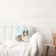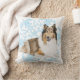 Cet oreiller de lancer présente mon dessin d'un magnifique long poil, Rough Collie, contre un arrière - plan saisonnier de flake de neige bleu.