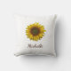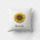Boho Yellow Sunflower throw pillow, with elegant customizable script typography. Enjoy this personalized accessory item for everyday use or as a gift for someone special.