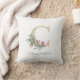 Coussin décoratif sur mesure pour la saison des fêtes avec branche de baies d'aquarelle avec initiale personnalisée.