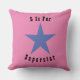 Faites que quelqu'un se sente spécial avec cet oreiller à lancer pour mettre dans leur chambre. Une étoile bleu clair à cinq branches avec un texte personnalisable qui dit "S Is For Superstar" sur un arrière - plan rose. L'envers de l'oreiller à lancer a une étoile plus petite qui a été transformée en un motif répétitif couvrant toute la zone.