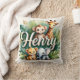 Coussin décorative douillette avec de mignons animaux de la jungle et de la verdure luxuriante avec le nom Henry en lettres élégantes. Parfait élément d'accent pour les crèches, les salles de jeux ou tout espace dédié au safari. Tissu souple et durable aux couleurs vives. Peut créer avec n'importe quel nom - contactez-moi !