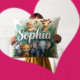 Coussin décorative confortable avec de mignons animaux de la jungle et de la verdure luxuriante avec le nom Sophia en lettrage élégant. Parfait élément d'accent pour les crèches, les salles de jeux ou tout espace dédié au safari. Tissu souple et durable aux couleurs vives. Peut créer avec n'importe quel nom - contactez-moi !