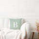 Coussin Sage B initial et Feuilles personnalisés