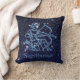 Jetez l'oreiller avec le symbole zodiaque pour Sagittarius en bleu argenté doux, recouvert des étoiles de la constellation, contre un arrière - plan ciel étoilé classé de bleu nuit profond à noir.