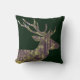 Scène forestière rustique superposée sur une silhouette de tête de cerf sur un arrière - plan vert foncé de forêt. Le design est le même des deux côtés du coussin. Cela ferait un excellent cadeau pour un chasseur ou une famille de chasseurs passionnés!
