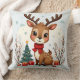 Coussin Scène mignonne de rennes de Noël dans une forêt en