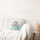 Coussin Sepia Merlion sur bleu avec écriture manuscrite