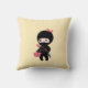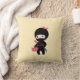 Mignonne caricature ninja fille habillée en noir mais pour un arc rose sur son masque de tête. L’épée katana japonaise traditionnelle peut être vue attachée sur son dos, sa poignée est également rose. La fille tient un panier rose.