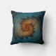 Un carré lance la conception de l'oreiller de "Whistling In The Dark", une fractale de l'Apophyse par Susan Wallace. Copyright © 2008, Susan Wallace. spirale de couleur orange vif sur un arrière - plan bleu turquoise texturé.