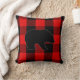 Coussin rustique de motif de contrôle de buffle de bûcheron parfait pour la silhouette de décor de cabine de pays d'un ours noir avec un arrière - plan enorme rocailleux de plaid de buffle rouge et noir. Identique des deux côtés. Décor primitif de très bon goût pour un cabine de rondin ou un décor rustique de pièce de garçons.