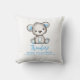 Custom throw pillow, featuring a cute teddy bear, trimmed in blue. Makes a thoughtful personalized new baby gift. Add your baby's name and birth details by following the "Personalize this template" prompt. You can also edit the text and color, if you wish.