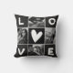 Cet élégant oreiller noir et blanc présente 4 photos avec une typographie moderne et tendance qui dit amour. Il y a un petit cœur chic au milieu. Un cadeau minimaliste simple pour votre maman, conjoint, petite amie et jeunes mariés.