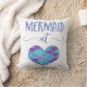 Sirène mignonne au carreau de coeur. Ce coussin a l'énonciation "sirène au coeur" écrit dans une belle police colorée dedans avec les aquarelles bleues, pourpres et vertes. Accomplissez le coeur bleu, pourpre et vert avec des échelles de sirène.