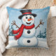 Joyeux bonhomme de neige orné d'une écharpe rouge, présentant un sourire joyeux tout en se tenant au milieu de la neige fraîchement tombée. Idéal pour des scènes de fêtes ou des décors sur le thème de l'hiver