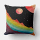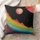 Un paysage cosmique surréaliste avec des montagnes aquarelles vibrantes et une crête arc-en-ciel brillante sous un ciel étoilé. Trois corps célestes planent au-dessus, plongeant dans une ambiance onirique et insolite. Cette oeuvre mêle l'esthétique de l'imaginaire et de l'espace, parfait pour les rêveurs et les stargazers.