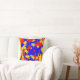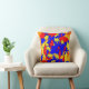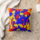 Cet oreiller à lancer présente un motif abstrait très coloré de plaques de peinture en rouge, bleu, jaune et orange.