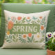 This natural-inspired outdoor pillow features a neutral tan color with a spring floral banner image. Use it to accent your porch or patio for the spring season.