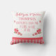 Ce beau coussin rose et blanc girly est fait avec un point de polka et un cadre inférieur de rayure avec les détails floraux. Ces belles petites fleurs roses avec le feuille vert encadrent la stat de la naissance de votre enfant. Peut être personnalisé avec le nom, la date de naissance, le temps de la naissance, le poids et la longueur de votre enfant à la naissance. Ordre aujourd'hui.