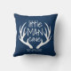 Votre petit garçon adorera ce coussin amusant ! Ce design présente un fond de texture bleue, des bois et une typographie personnalisée. Ajoutez la date de naissance de votre fils pour compléter le look.