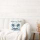 Une belle et élégante maison de plage personnalisée jetez oreiller / coussin pour vous à la maison. Le design est composé de 2 palmiers bleus et d'un hamac, de la mer et des oiseaux. Un magnifique décor de maison d'île personnalisée pour votre chalet ou maison d'hôtes à thème côtier. Tout le texte peut être customisé puis personnaliser avec le nom de famille et la date.