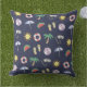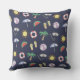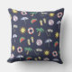 Coussin extérieur décontracté bleu foncé avec collage de plage illustré coloré.